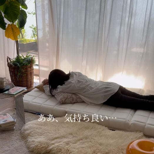 良質な睡眠はもちろん、お菓子を食べながら映画を見る、読書をする、時間を忘れて語り合うといった、日々の暮らしに寄り添い続けるマットレス。毎日頑張るあなたを支えます。 -